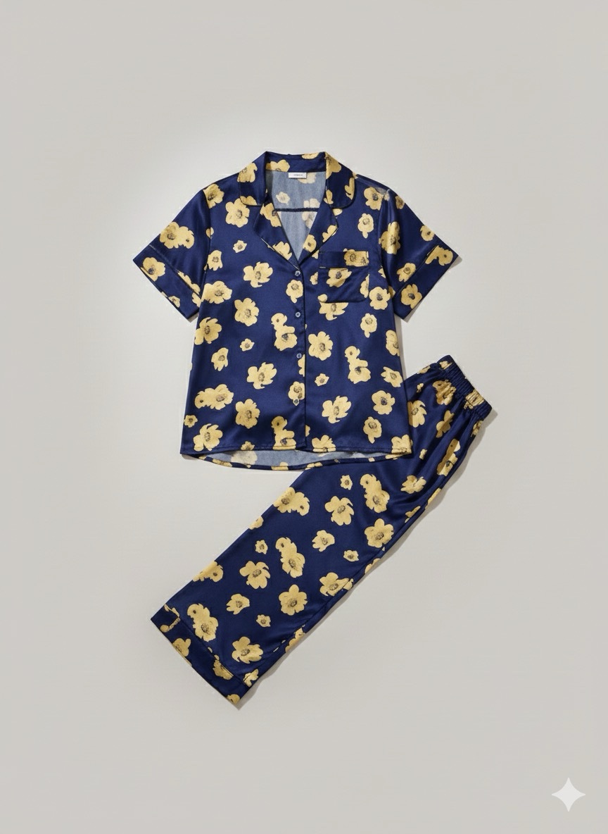 طرح آفتابگردان نماد شادی و سرزندگی است. این ست پیژامه با ترکیب این طرح شاد و جنس ساتن ابریشم، نه تنها برای خواب، بلکه به عنوان یک پوشش خانگی شیک برای گذراندن اوقات فراغت در خانه بسیار ایدهآل است.