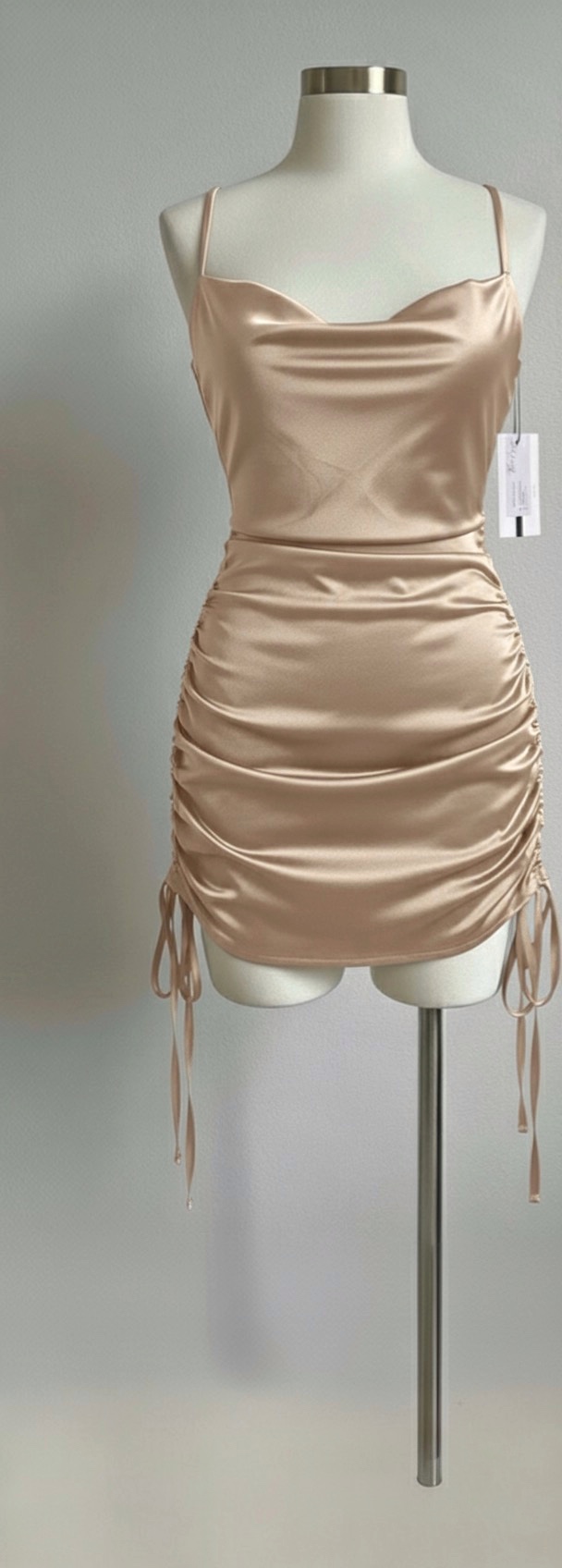 این پیراهن، یک مدل انقلابی و بسیار ترند برای بانوان است: پیراهن کوتاه ساتن مدل دراپه. این طراحی که بر پایه چیندار شدن (Drape) هوشمندانه پارچه ساتن بنا شده، یک پیراهن زنانه مجلسی فوقالعاده شیک و چشمنواز را به وجود آورده است. اگر به دنبال یک لباس پر زرق و برق هستید که بتوانید فرم آن را متناسب با سلیقه و نوع مهمانی خود تنظیم کنید، این مدل، بهترین انتخاب شماست.
