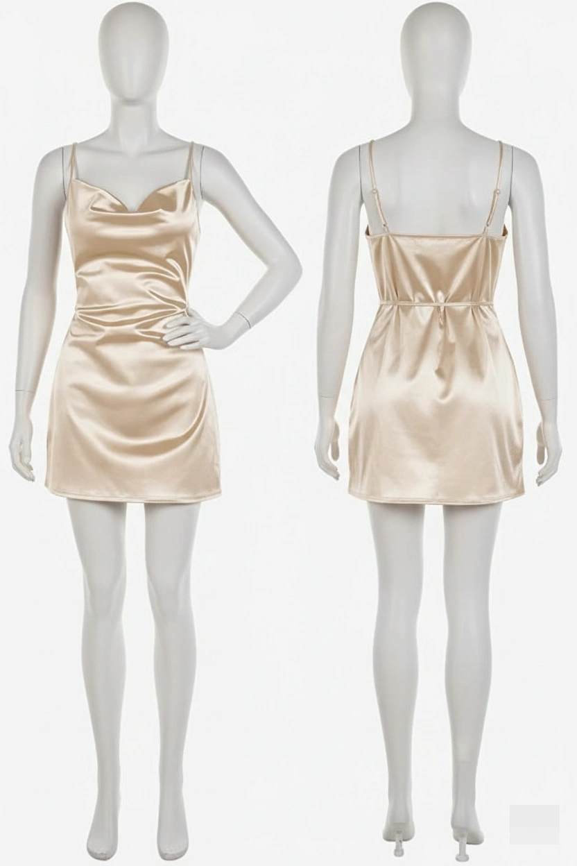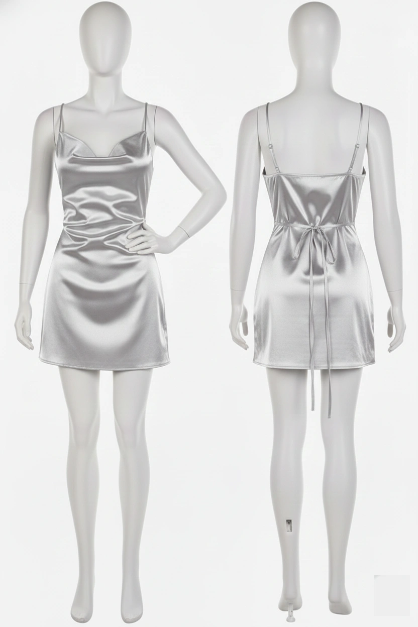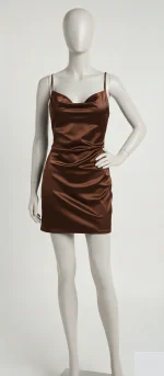 این پیراهن با بافت براق و ظاهر درام خود، نیازی به اکسسوریهای شلوغ ندارد. آن را با یک جفت کفش پاشنه بلند ظریف و یک کیف دستی مینیمال ست کنید تا درخشش ساتن اصلیترین بخش استایل شما باشد.